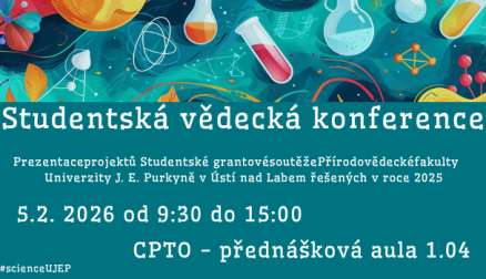 Ve čtvrtek 5. 2. 2026 od 9:30 se v přednáškové aule CPTO 1.04 uskuteční tradiční Studentská vědecká konference Přírodovědecké fakulty UJEP. Studenti doktorského a magisterského studia na ní představí projekty, které řešili v roce 2025 v rámci fakultní ...